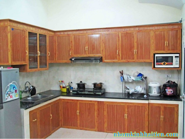 Hình 2: Tủ bếp nhôm kính màu vân gỗ